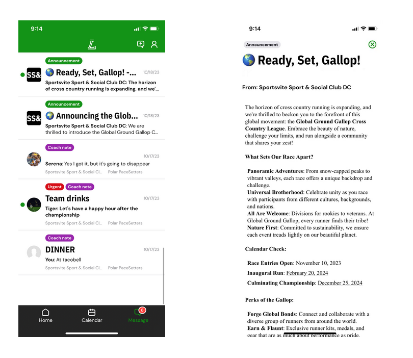 The Collective may send important messages, called Announcements. These will be sent as an email, a push notification to your phone, and will also appear in the Home tab and your Message tab.